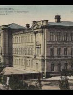 Анотація: На листівці зображено першу будівлю Комерційного училища імені Імператора Миколи ІІ.