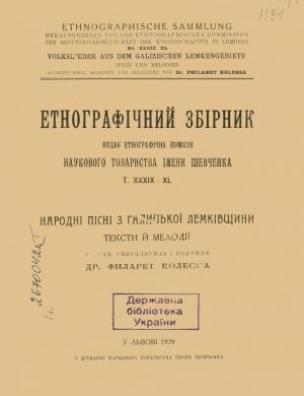 Етноґрафічний збірник [Електронна копія]. Львів : З друк. Наук. Т-ва ім. Шевченка, 1893- . Т. 39-40 :