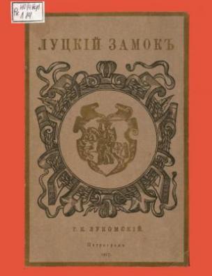 Оригінал друкованого документу зберігається в НБУ ім. Ярослава Мудрого: Лукомский Г. К. Луцкий замок / Г. К. Лукомский. — Петроград : В тип. Петрогр. градоначальства, 1917. – 15, [1] с.