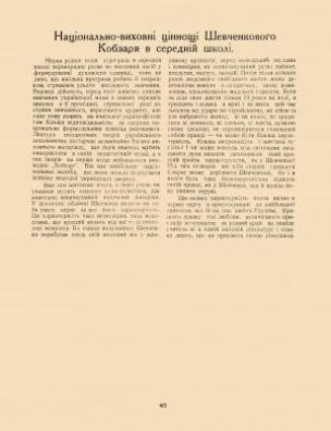 Бібліографічний опис: Національно-виховні ціннощі Шевченкового Кобзаря в середній школі [Електронна копія] // Рідна школа. 1939. Ч. 6-7. С. 87-89.