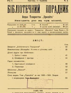 Бібліографічний опис: Бібліотечний порадник [Електронна копія] / Видає Т-во ”Просвіта”, 1925 (Київ : НБУ ім. Ярослава Мудрого). Рік 1, ч. 2 : Квітень – Червень. Електрон. текст. дані (1 файл : 57,9 Мб). 1925 (Київ: НБУ ім. Ярослава Мудрого, 2017).