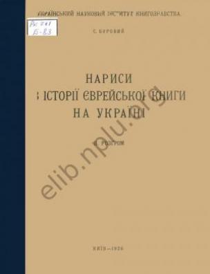 Нариси з історії єврейської книги на Україні / С. Боровий ; Укр. наук. ін-т книгозн. К. : [б. в., 192-]- . [Т.] 2 :