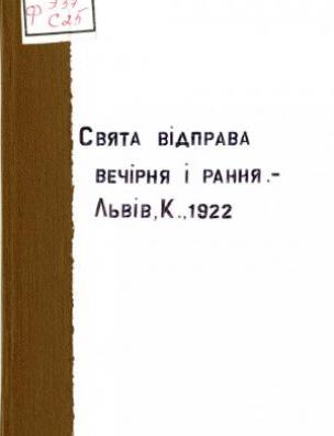 Оригінал друкованого документу зберігається в НБУ ім. Ярослава Мудрого: Свята відправа вечірня і рання / на укр. мову з грец. пер. проф. Іван Огієнко. — Львів ; Київ : [б. в., 1922]. – [289] с.