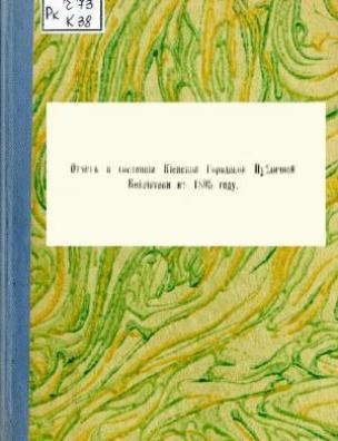 Отчет о состоянии Киевской городской публичной библиотеки в 1895 году [Електронна копія]. Электрон. текст. дан. (1 файл : 2,82 Мб). [Б. м. : б. и., 1896?] (Київ: НБУ ім. Ярослава Мудрого, 2014).