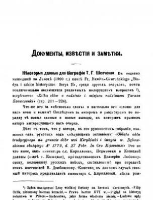 Анотація: Автор представленого матеріалу намагається уточнити біографічні відомості про Тараса Григоровича Шевченка, цитує польського дослідника Равіту-Гавронського. Наводить дані про родину Шевченків, аналізує записи метричних книг, дискутує (на сторінках журналу) та спростовує думки інших дослідників, зокрема Чалого і Кониського.