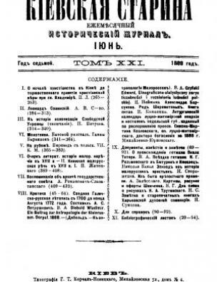 Анотація: Досліджено витоки християнства, зокрема процес його поширення у Києві до урочистого прийняття віри при св. Володимирі. Опубліковано останню частину дослідження про історію колонізації Слобідської України. Продовжено публікацію мовознавчого нарису Павла Житецького, що висвітлює історію розвитку літературної української мови. Один із матеріалів номера присвячено картинам, малюнкам та офортам Тараса Шевченка.