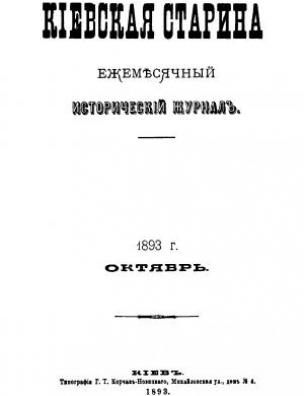 Бібліографічний опис: Киевская старина [Електронна копія] : ежемесяч. ист. журн. Киев : Тип. Г. Т. Корчак-Новицкого, 1882– . Т. 62. Октябрь : Электрон. текст. дан. (1 файл : 203 Мб). 1893 (Киев: НБУ ім. Ярослава Мудрого, 2015).