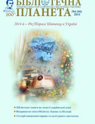 Анотація: У журналі проаналізовано акції, заходи, ініціативи та проекти бібліотек України, спрямовані на підтримку армії, на допомогу учасникам АТО і волонтерам, а також вимушеним переселенцям. Презентовано окремі видання, підготовлені бібліотеками Вінницької області до 200-річчя від дня народження Тараса Шевченка. Здійснено огляд нових форм роботи в бібліотеках, інформацію подано у вигляді словникових статей. Досліджено історію книжкової оправи та палітурного мистецтва в Україні.