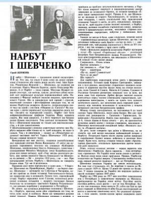 Анотація: Сучасний історик Сергій Білоконь проводить цікаві паралелі між Георгієм Нарбутом і Тарасом Шевченком. Автор вважає, що це зіставлення важливе не тільки для мистецтвознавства, а й для самопізнання. Зазначає, що кожен у свій час започаткував зліт української культури, обидва народились 9 березня. Називає такі паралелі: Нарбут і Шевченко були зачаровані козацькою романтикою, мали «петербурзьку прописку» але були національними митцями, думки яких линули до дітей, до букваря і абетки. І останнє, повернувшись у Київ у 1917 році Нарбут оселився у приміщенні, в якому в 1859 році мешкав Тарас Шевченко.