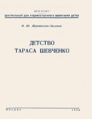 Детство Тараса Шевченко [Електронна копія] : (пьеса в 3 действиях и 6 картинах) / Н. Ю. Жуковская-Лисенко ; НКП РСФСР, Центр. дом худож. воспитания детей. Електрон. текст. дані (1 файл : 29,0 Мб). М. : [б. и.], 1940 (Київ: НБУ для дітей, 2016).