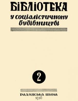 Бібліографічний опис: Бібліотека у соціалістичному будівництві [Електронна копія] : журнал теорії та практики бібліотечної роботи. Харків : Рад. шк., 1934 (Київ : НБУ ім. Ярослава Мудрого). № 2. Травень : Електрон. текст. дані (1 файл : 67,7 Мб). 1936 (Київ: НБУ ім. Ярослава Мудрого, 2016).