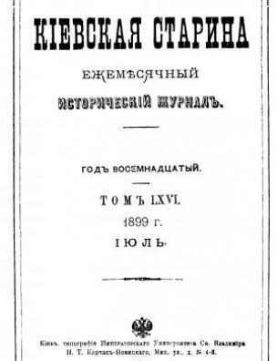 Бібліографічний опис: Киевская старина [Електронна копія] : ежемесяч. ист. журн. Киев : Тип. Г. Т. Корчак-Новицкого, 1882– . Т. 66. Июль : Электрон. текст. дан. (1 файл : 9,22 Мб). 1899 (Київ: НБУ ім. Ярослава Мудрого, 2016).
