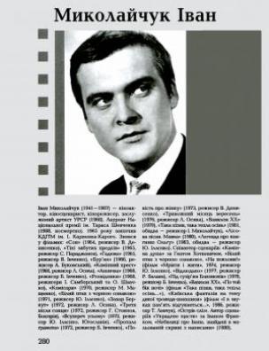 Анотація: Представлено коротку біографічну довідку про кіноактора, кіносценариста та кінорежисера Івана Миколайчука (1941–1987). Перелічено фільми, у яких знявся актор, а також фільми, в яких Іван Миколайчук був режисером, автором або співавтором сценарію.