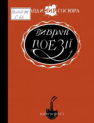 Вибрані поезії [Електронна копія] : (р.р. 1921, 1922 і 1923-й) / Вол. Сосюра. Електрон. текст. дані (1 файл : 12,8 Мб). Харків : Книгоспілка, 1925 (Київ: НБУ ім. Ярослава Мудрого, 2016).