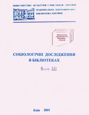 Оригінал друкованого документу зберігається в НБУ ім. Ярослава Мудрого: Соціологічні дослідження в бібліотеках : інформ.-аналіт. Вип. 26 / уклад. В. І. Студенкова ; М-во культури України, Нац. парлам. б-ка України. — Київ : Нац. парлам. б-ка України, 2001. – 15 с.