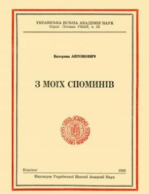 Оригінал друкованого документу зберігається в НБУ ім. Ярослава Мудрого: Антонович К. З моїх споминів. [Ч. 1] / Катерина Антонович ; Укр. Вільна Акад. Наук. — Вінніпег : Накладом Укр. вільної акад. наук, 1965. – 31 с.