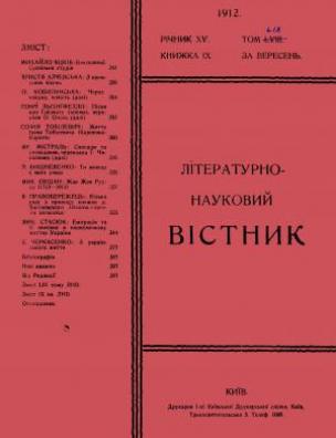 Кількість документів в електронній бібліотеці : 14249 | Головна → Мистецтво → Український модернізм → Література → Періодичні видання. Бібліографічні покажчики → Літературно-науковий вістник → 1912 Головна → Культурологія → Історія культури → Наукове товариство імені Шевченка → Літературно-науковий вістник → 1912