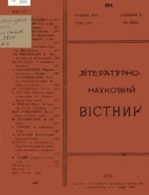 Бібліографічний опис: Літературно-науковий вістник [Електронна копія] / Наук. т-во ім. Шевченка у Львові ; за ред. О. Маковей, 1899 (Київ : НБУ ім. Ярослава Мудрого). Річник 17, т. 65, кн. 5 : Електрон. текст. дані (1 файл : 233 Мб). 1914 (Київ: НБУ ім. Ярослава Мудрого, 2016).