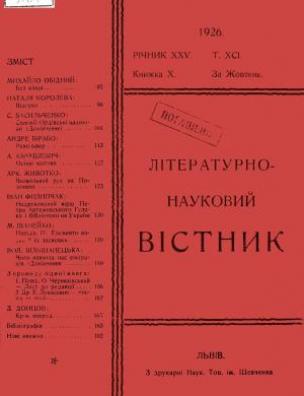 Бібліографічний опис: Літературно-науковий вістник [Електронна копія] / Наук. т-во ім. Шевченка у Львові ; за ред. О. Маковей, 1899 (Київ : НБУ ім. Ярослава Мудрого). Річник 25, т. 91, кн. 10 : Електрон. текст. дані (1 файл : 15,9 Мб). 1926 (Київ: НБУ ім. Ярослава Мудрого, 2016).