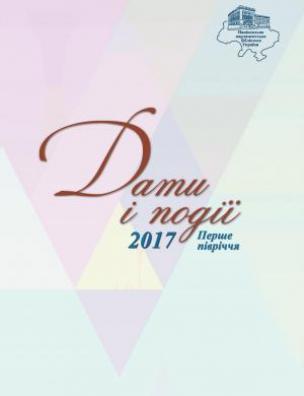 Анотація: Календар знаменних дат «Дати і події» виходить двічі на рік. Представлений випуск присвячено визначним річницям подій суспільно-політичного, наукового та культурно-мистецького життя у першому півріччі 2017 року. До видання ввійшли фактографічні довідки про ювілеї видатних особистостей, а також відомості щодо релігійних і професійних свят, днів заснування установ та населених пунктів України.