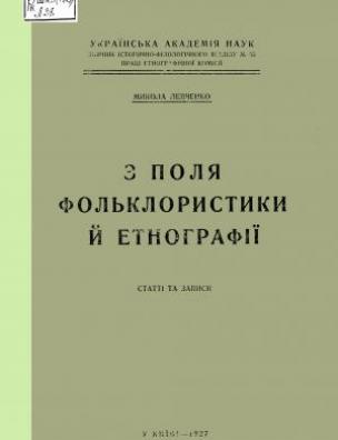З поля фольклористики й етнографії [Електронна копія] : ст. та записи / Микола Левченко ; Укр. акад. наук, Етногр. коміс. Електрон. текст. дані (1 файл : 95,7 Мб). У Києві : З друк. Укр. акад. наук, 1927 (Київ: НБУ ім. Ярослава Мудрого, 2017). (Збірник історично-філологічного відділу; № 55). Бібліогр. у підрядк. прим.