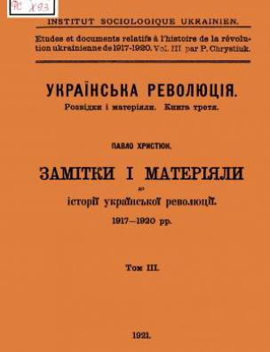 Замітки і матеріали до історії української революції [Електронна копія] : 1917–1920 рр. : [у 4 т.] / Павло Христюк ; Укр. соціол. ін-т. Електрон. текст. дані. Wien : [б. в.], 1921 (Київ: НБУ ім. Ярослава Мудрого, 2017). (Українська революція. Розвідки і матеріали). Т. 3 : Електрон. дані (1 файл : 248 Мб). Wien : [б. в.]. 1921 (Київ: НБУ ім. Ярослава Мудрого, 2017). (Українська революція. Розвідки і матеріали; кн. 3).