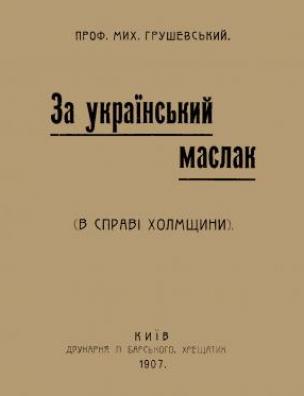 За український маслак [Електронна копія] : (в справі Холмщини) / проф. Мих. Грушевський. Електрон. текст. дані (1 файл : 35,2 Мб). Київ : Друк. П. Барського, 1907 (Київ: НБУ ім. Ярослава Мудрого, 2017).