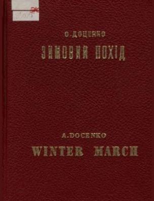 Зимовий похід (6. XII.1919 – 6. V. 1920) [Електронна копія] / Олександер Доценко. Електрон. текст. дані (1 файл : 298 Мб). Варшава, 1932 (Дніпропетровськ: ДОУНБ ім. Первоучителів слов’янських Кирила і Мефодія, 2017). (Серiя iсторична; кн. 1).