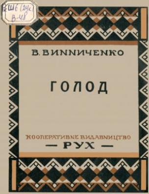 Голод [Електронна копія] / В. Винниченко. Електрон. текст. дані (1 файл : 11,8 Мб). Київ : Рух, 1927 (Київ: НБУ ім. Ярослава Мудрого, 2017).