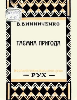 Таємна пригода [Електронна копія] / В. Винниченко. Електрон. текст. дані (1 файл : 15,5 Мб). Київ : Рух, 1927 (Київ: НБУ ім. Ярослава Мудрого, 2017).
