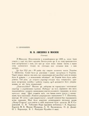 Анотація: Презентовано спогади актора, режисера і драматурга Василя Овчинникова про українського композитора, диригента й педагога Миколу Лисенка та його перебування в Москві. Розказано про знайомство з композитором під час участі в його хорі. Висвітлено перебіг підготовки вшанування 50-річчя з дня смерті Тараса Шевченка та інші події.